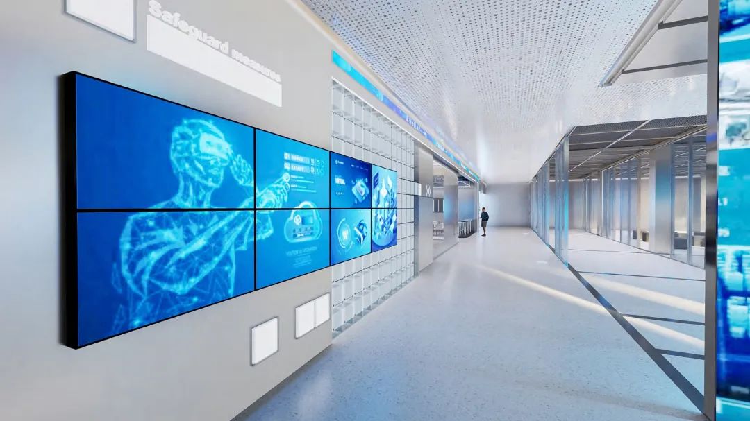 同时,展厅通过以55英寸DID拼接屏为主的企业展示新媒体空间,打造体验故事型+创新科技型的企业展示区域,让观众零距离“触摸”科技改变未来生活。